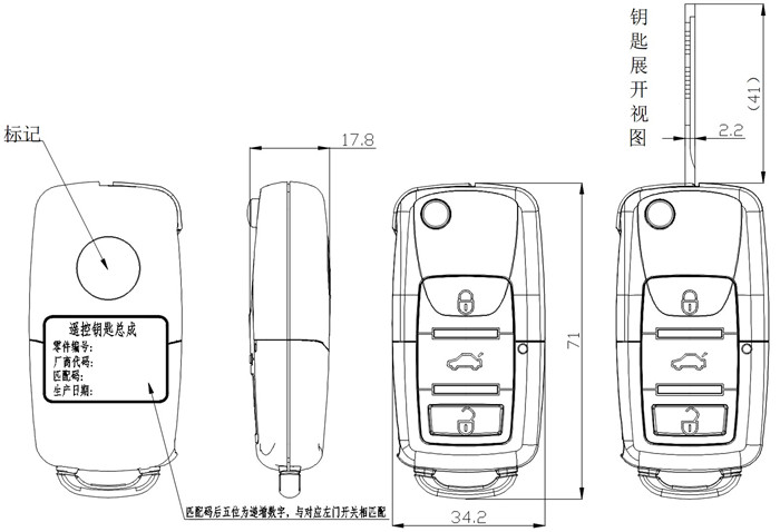 5、標稱電壓3V,發(fā)射頻率433.92MHz。